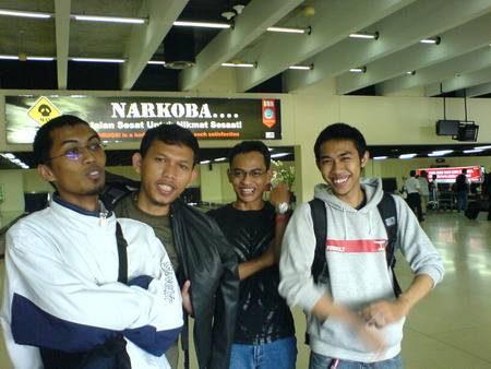 Pagi itu (jam 6:30) kita berangkat dari C1 (kantor 1). Dengan diantar oleh Big Boss, kita berjumlah 38 orang naik bis Gunung Harta menuju Bandara Juanda Surabaya. Sebelumnya kita berencana berangkat dari Bandara Abdurahman Saleh Malang. Tapi karena kehabisan tiket pesawat untuk pulang-pergi, kita tidak tidak jadi merasakan bandara kota sendiri.