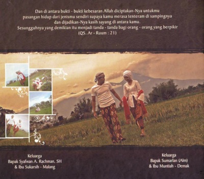 Selamat menempuh bahtera hidup baru, semoga diberi berkah oleh Allah SWT dan diberi keturunan yang sehat, sholeh, dan berbudi pekerti yang luhur..Amieen..
