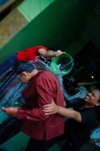 Acara disisipi dengan "siraman", yang mana menurut KTP, aku ulang tahun pas tanggal tersebut.